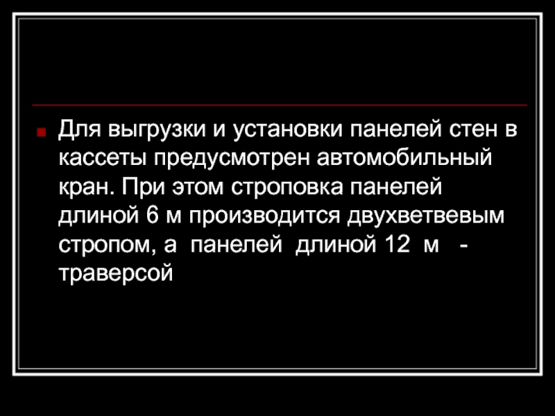Слайд 78Для выгрузки и установки панелей стен в кассеты предусмотрен автомобильный
