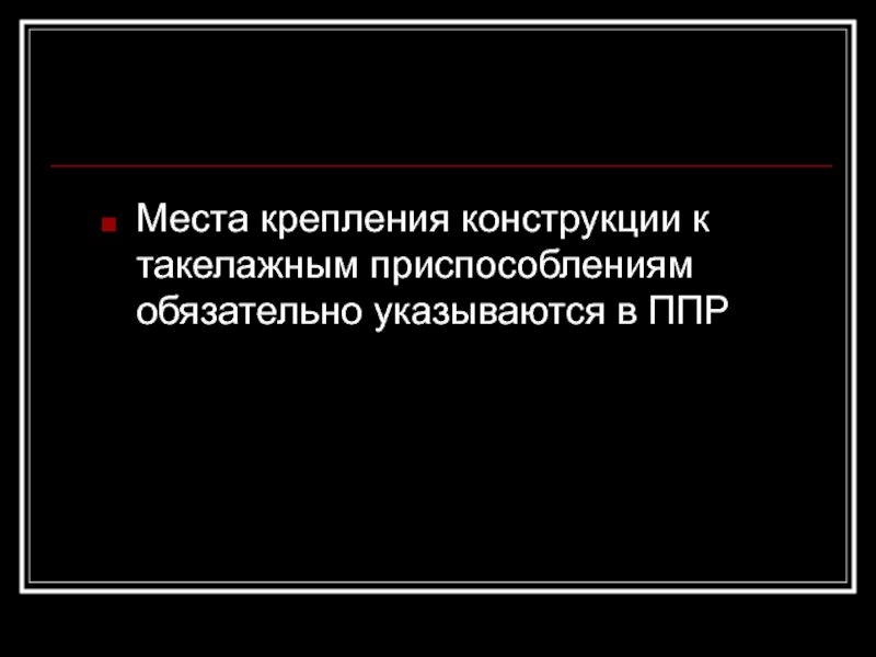 Слайд 13Места крепления конструкции к такелажным приспособлениям обязательно указываются в ППР