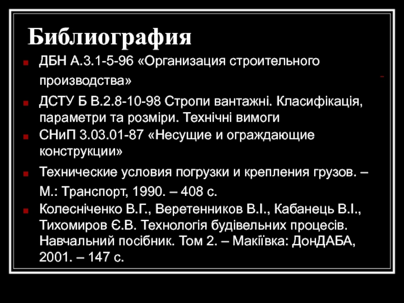 Колесніченко В.Г., Веретенников В.І., Кабанець В.І., Тихомиров Є.В. Технологія будівельних процесів. Навчальний посібник. Том 2. – Макіївка: ДонДАБА, 2001. – 147 с.