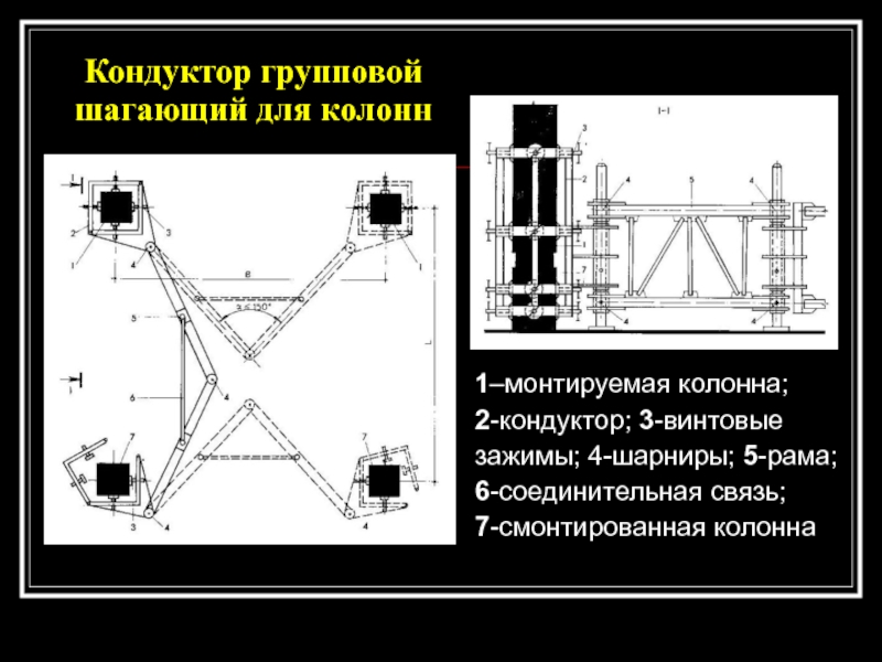 Слайд 67Одиночный кондуктор для монтажа колонн первого яруса