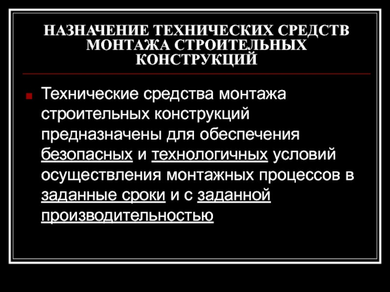 Слайд 3НАЗНАЧЕНИЕ И КЛАССИФИКАЦИЯ ТЕХНИЧЕСКИХ СРЕДСТВ ОБЕСПЕЧЕНИЯ МОНТАЖА СБОРНЫХ КОНСТРУКЦИЙ