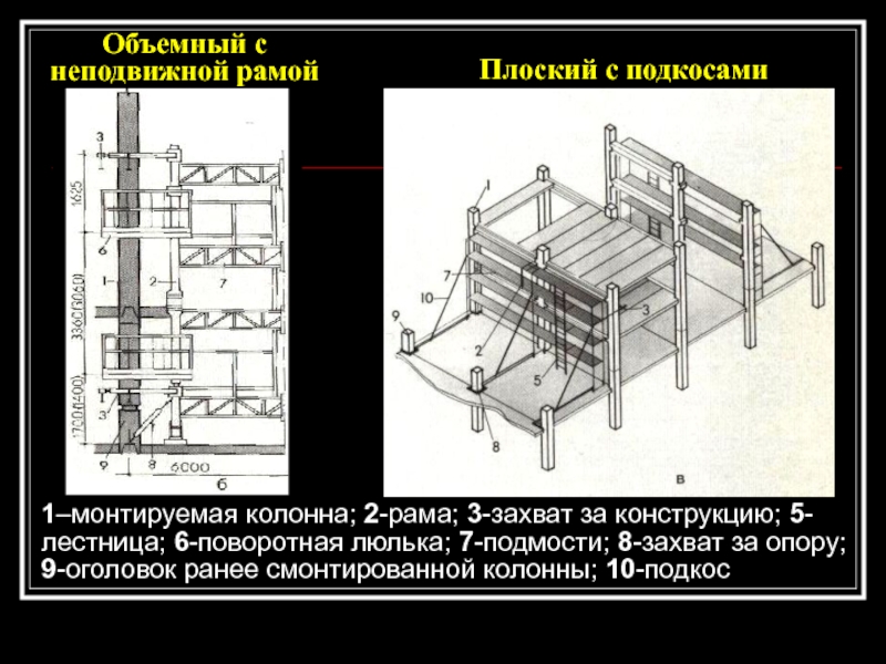 Слайд 69 1–монтируемая колонна; 2-стойки; 3-захват за конструкцию;