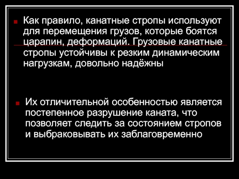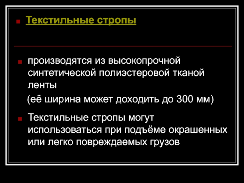 Слайд 25Текстильные стропы устойчивы к агрессивному воздействию окружающей среды, мало подвержены