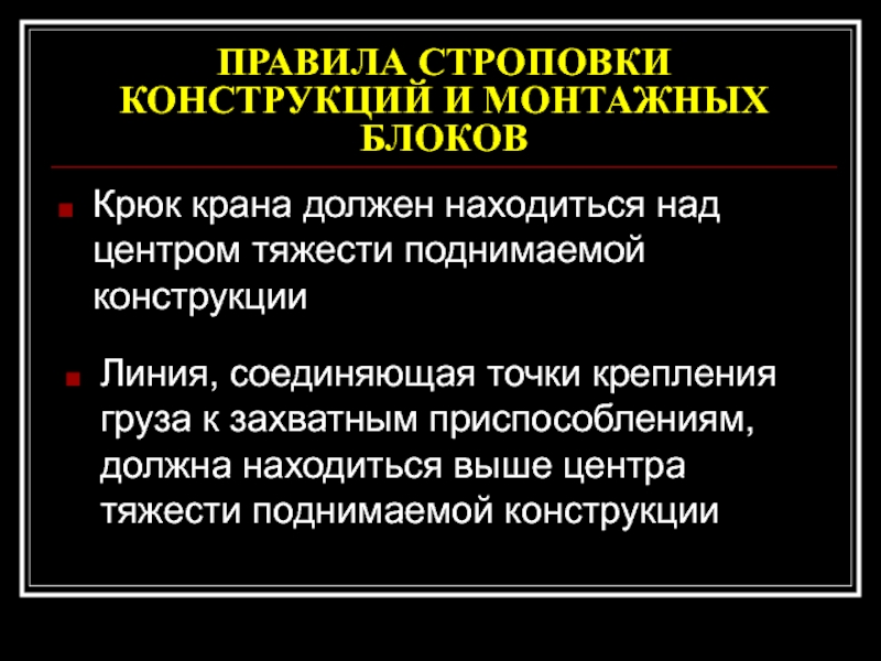 Слайд 11ПРАВИЛА СТРОПОВКИ КОНСТРУКЦИЙ И МОНТАЖНЫХ БЛОКОВ