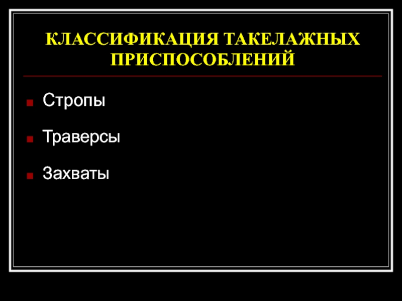 Слайд 15КЛАССИФИКАЦИЯ ТАКЕЛАЖНЫХ ПРИСПОСОБЛЕНИЙ
