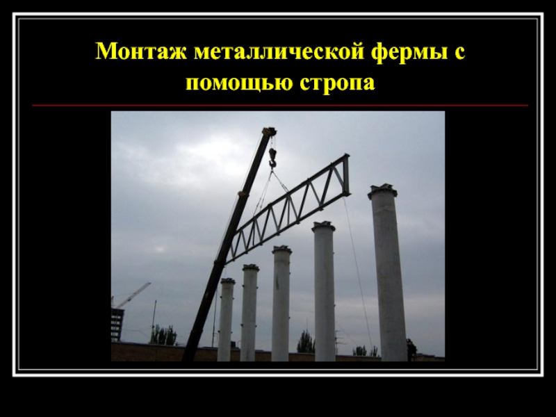 Слайд 21Монтаж металлической фермы с помощью стропа