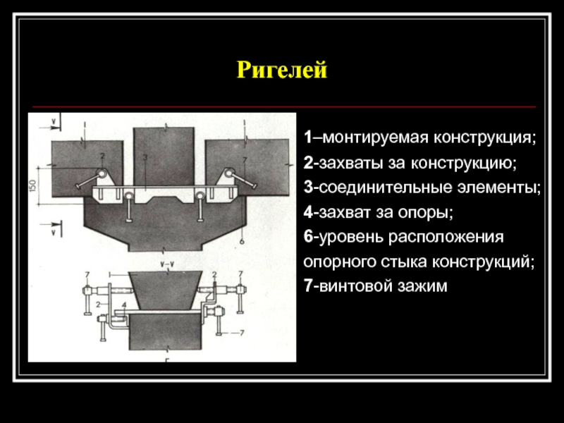 6-уровень расположения опорного стыка конструкций; 7-винтовой зажим