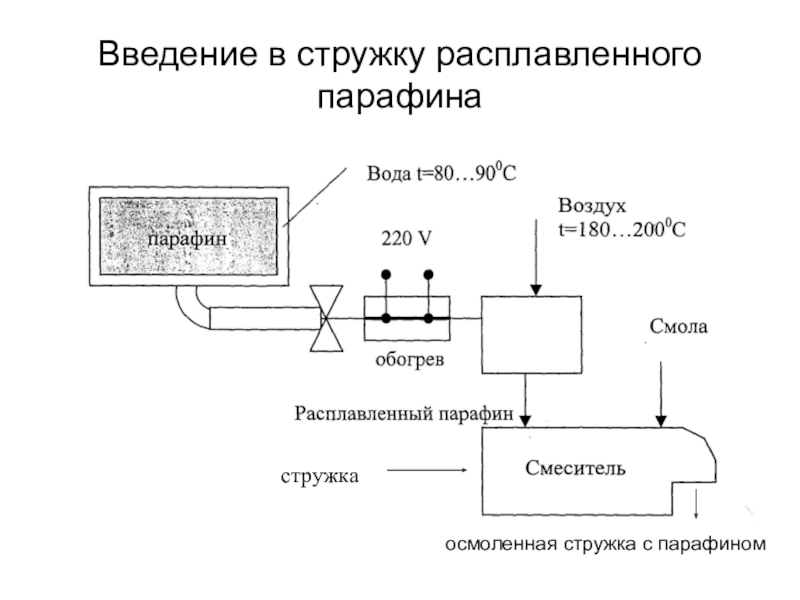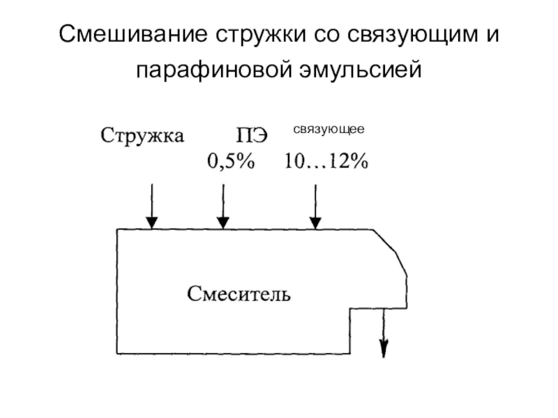 Слайд 5Смешивание стружки со связующим и парафиновой эмульсией