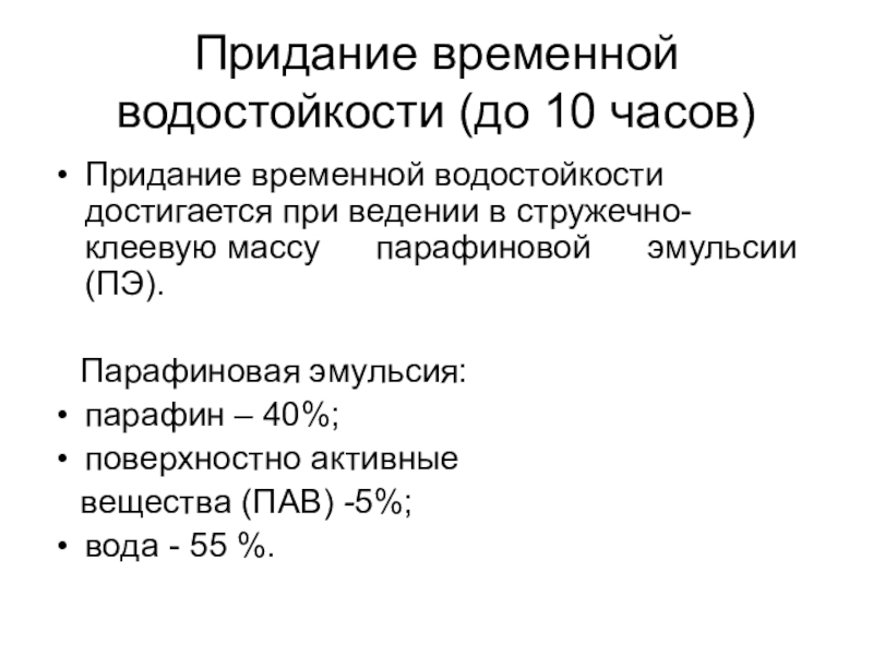 Слайд 3Придание временной водостойкости (до 10 часов)