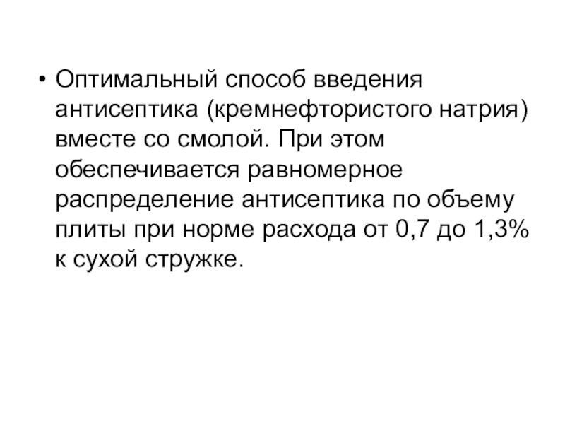 Слайд 24При введении антипирена на осмоленную стружку или непосредственно в связующее