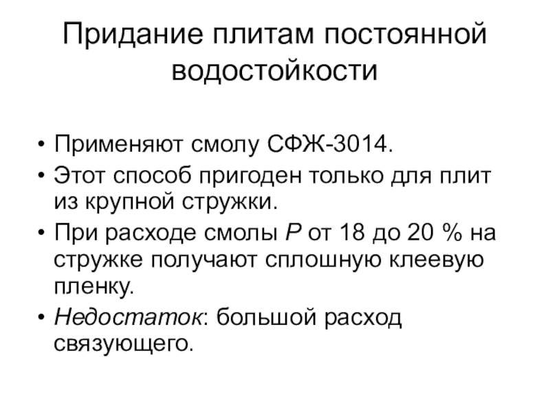 Слайд 2Повышение водостойкости плит основано на методах снижения скорости проникновения влаги