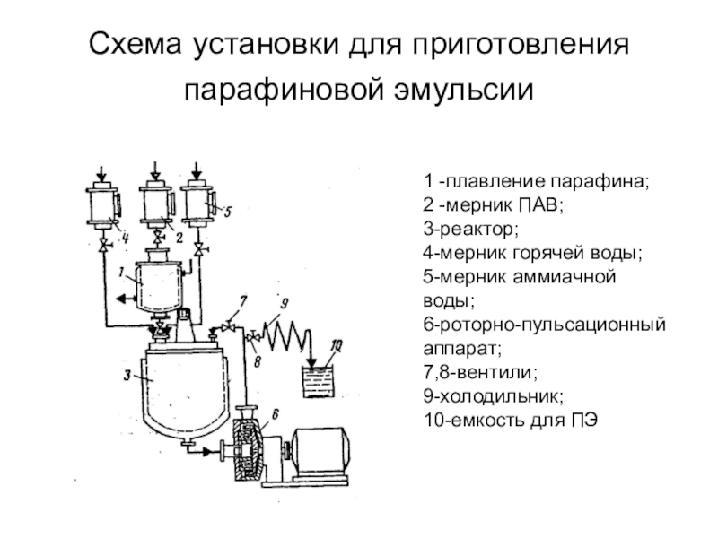 Слайд 4Схема установки для приготовления парафиновой эмульсии