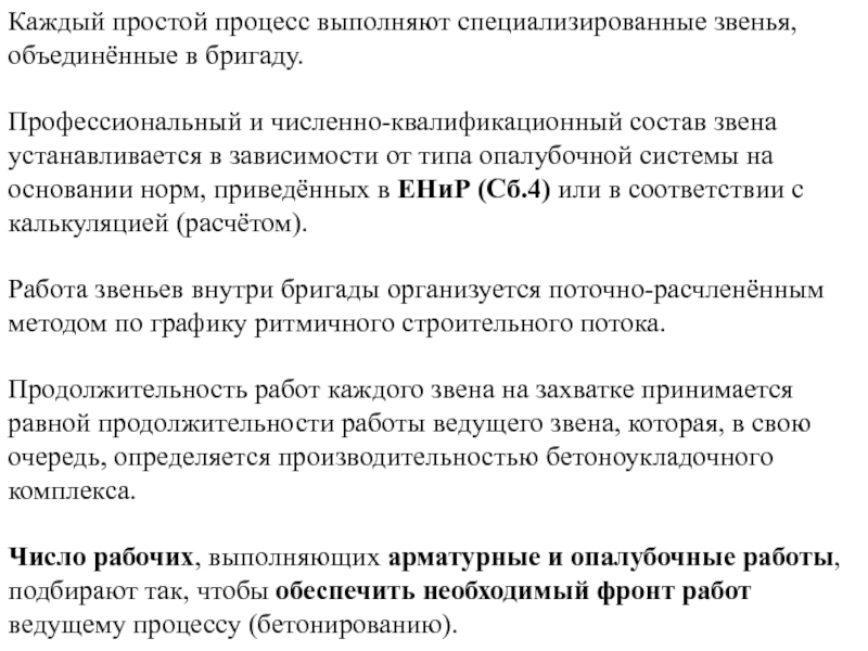 горизонтальная разрезка предполагает равновеликость каждого простого процесса по трудоёмкости (с возможным отклонением до 25%);