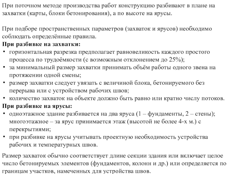 захватки (карты, блоки бетонирования), а по высоте на ярусы.