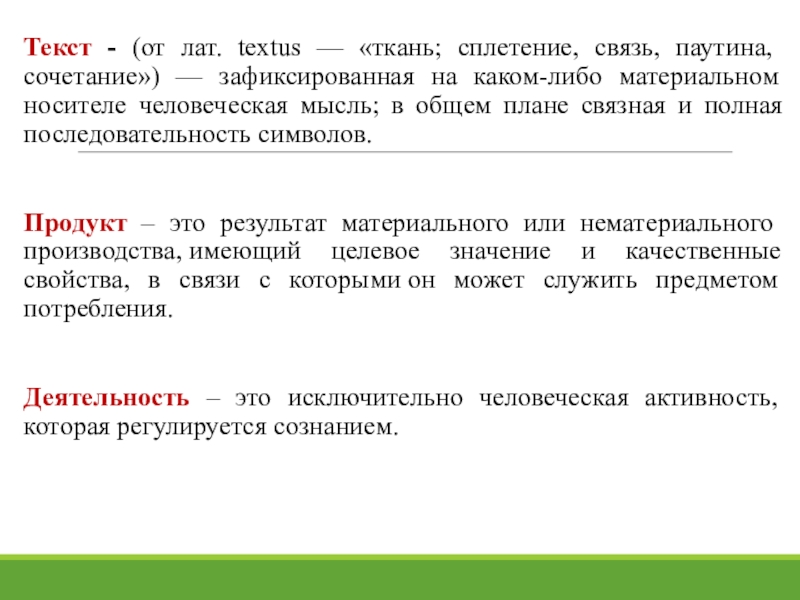 Слайд 3Текст - (от лат. textus — «ткань; сплетение, связь, паутина,