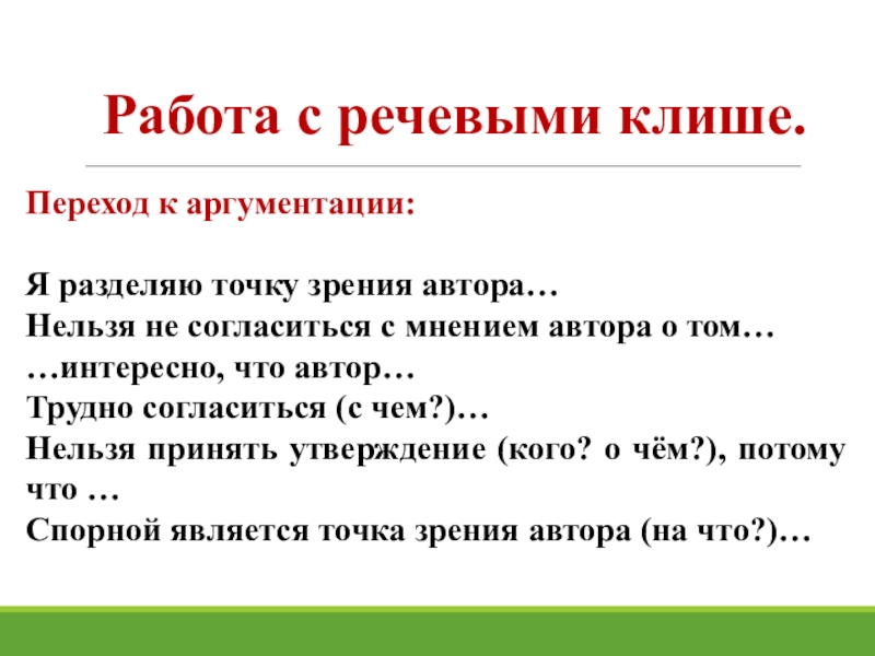 Слайд 22Работа с речевыми клише.