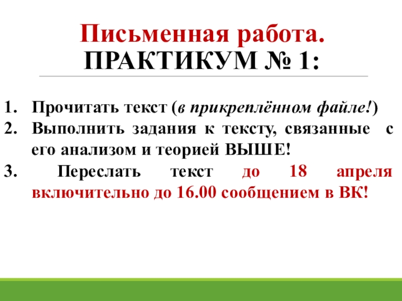 текст до 18 апреля включительно до 16.00 сообщением в ВК!