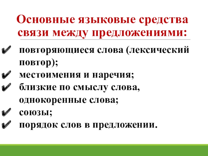 Слайд 6Основные языковые средства связи между предложениями:
