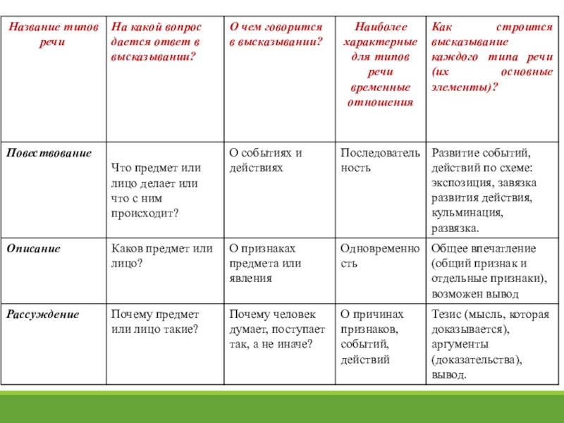 Умение конструировать тексты разных типов и стилей речи в устных
