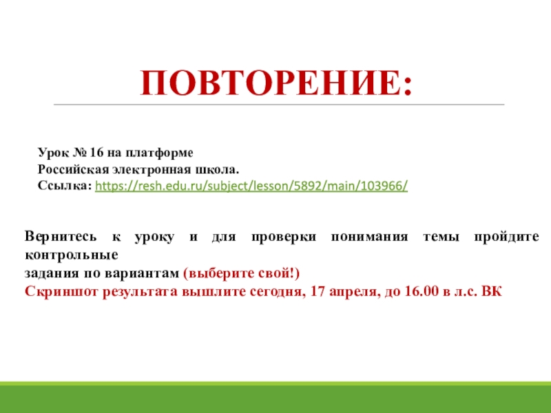 и отправьте сегодня, 17 апреля до 16.00 в ВК)
