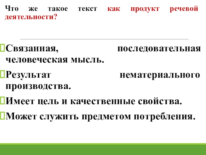 Слайд 4Что же такое текст как продукт речевой деятельности?