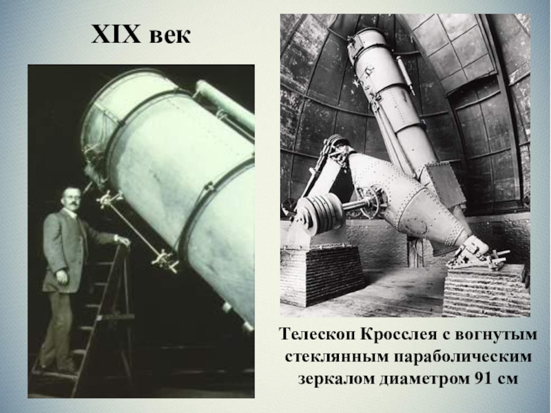 XIX векТелескоп Кросслея с вогнутым стеклянным параболическим зеркалом диаметром 91 см