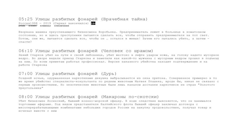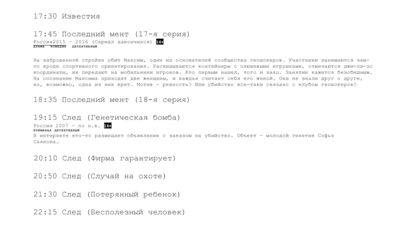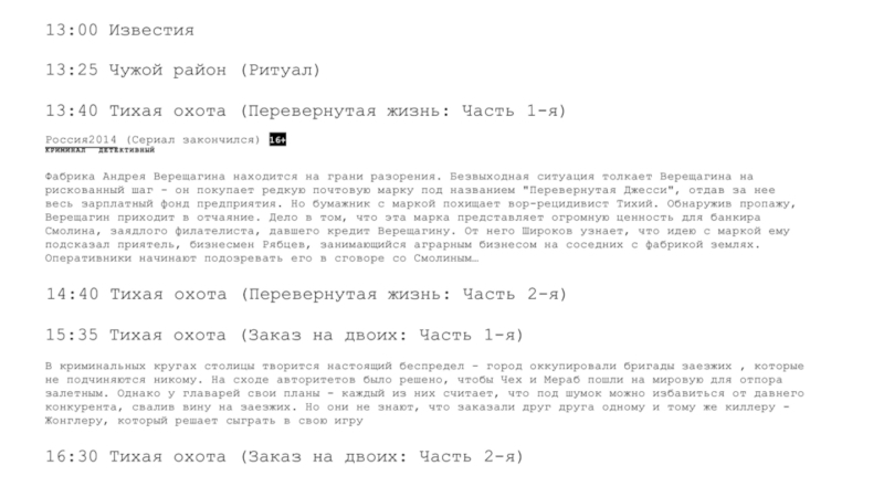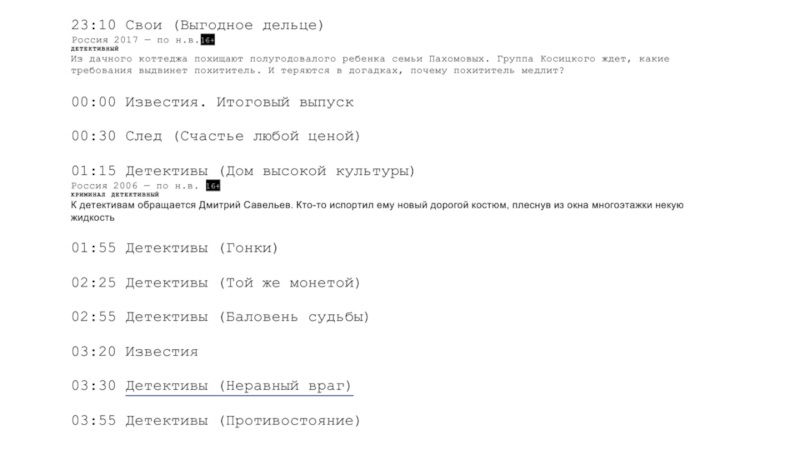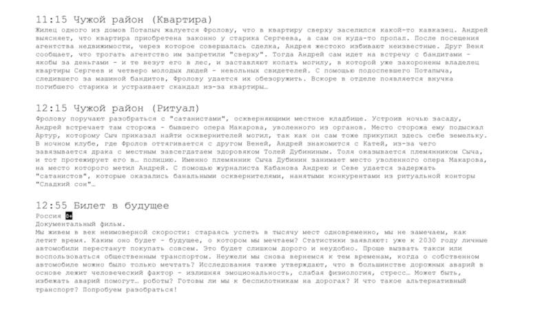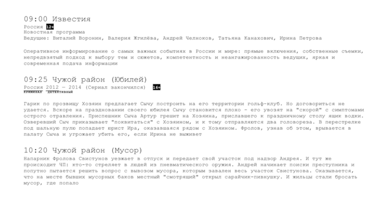 Для выходных дней (большое внимание уделяют также дневным часам и пред-прайм-тайму).