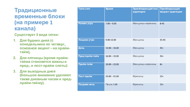 прайм-тайм),Для пятницы (кроме прайм-тайма становятся важны и пред-, и пост-прайм слоты)