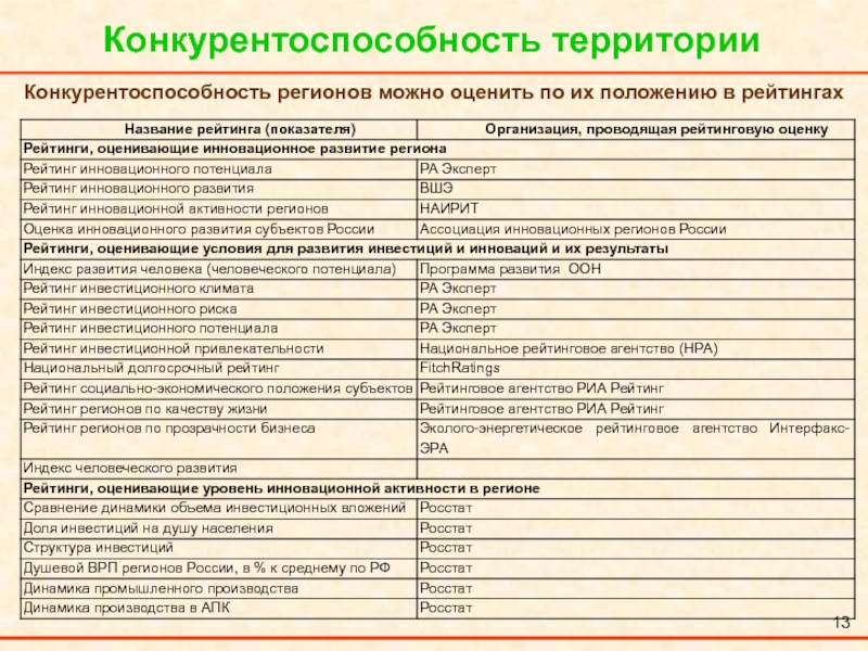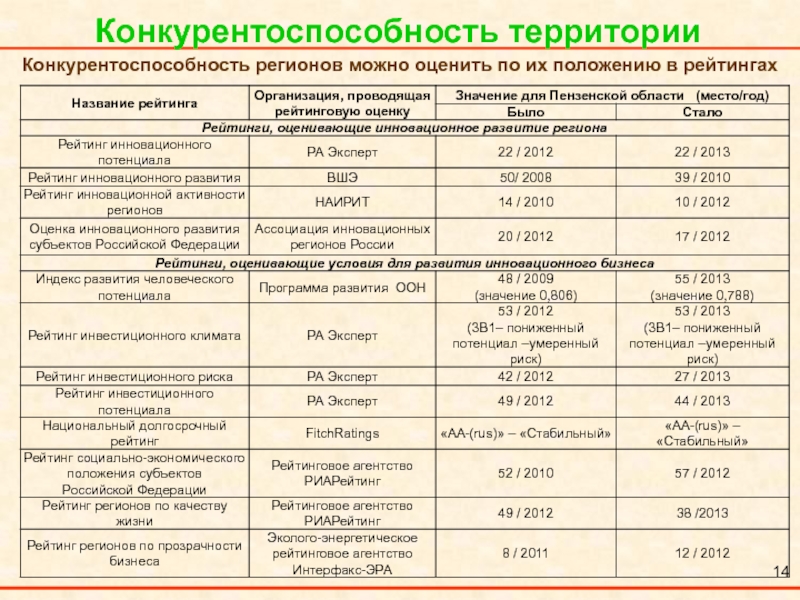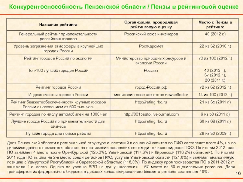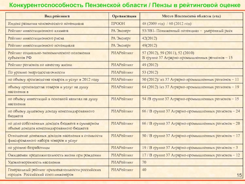 Конкурентоспособность Пензенской области / Пензы в рейтинговой оценке