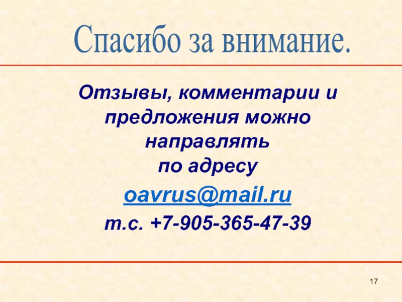 Если не удалось найти и скачать доклад-презентацию, Вы можете заказать его на нашем сайте. Мы постараемся найти нужный Вам материал и отправим по электронной почте. Не стесняйтесь обращаться к нам, если у вас возникли вопросы или пожелания: