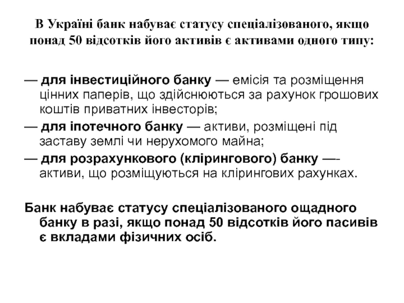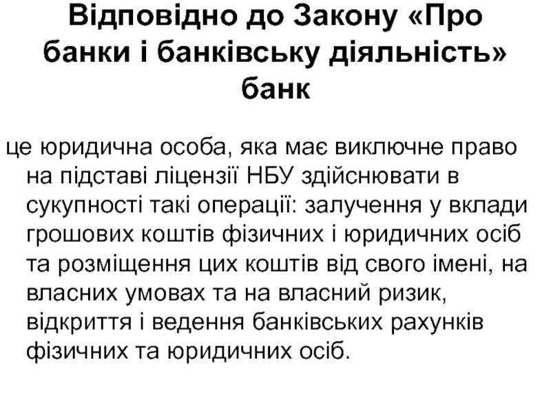 Слайд 17Відповідно до Закону «Про банки і банківську діяльність» банк