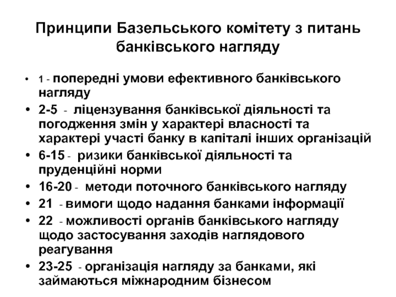 Слайд 14Принципи Базельського комітету з питань банківського нагляду