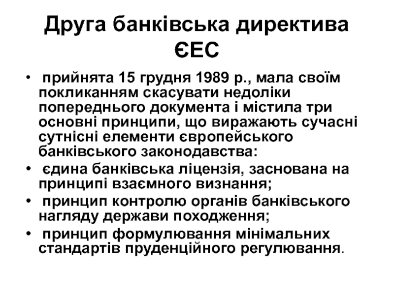 принципи, що виражають сучасні сутнісні елементи європейського банківського законодавства: