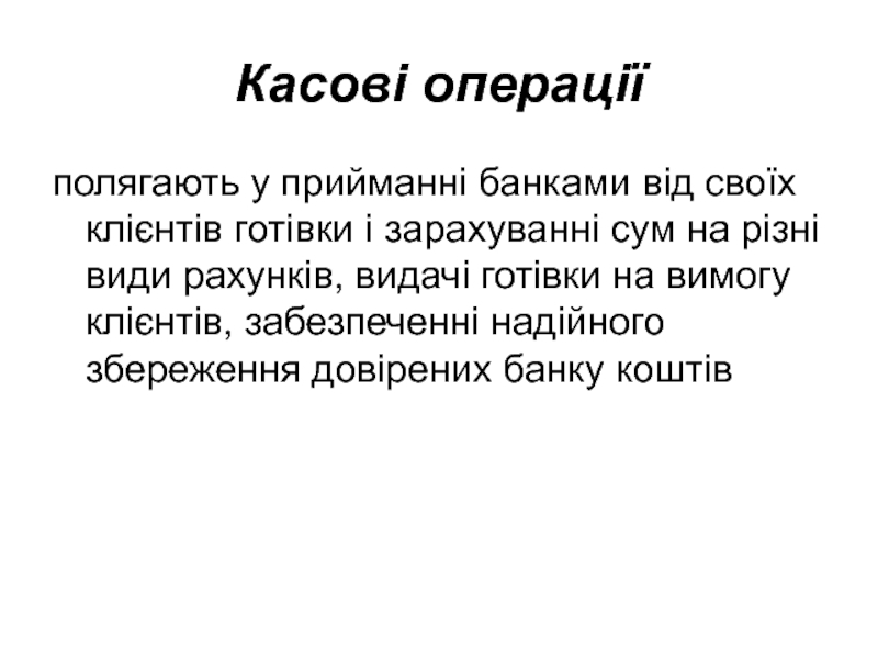 в сукупності такі операції: залучення у вклади грошових коштів фізичних і юридичних осіб та розміщення цих коштів від свого імені, на власних умовах та на власний ризик, відкриття і ведення банківських рахунків фізичних та юридичних осіб.