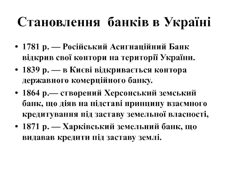 1871 р. — Харківський земельний банк, що видавав кредити під заставу землі.