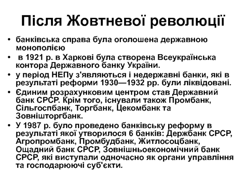 у період НЕПу з'являються і недержавні банки, які в результаті реформи 1930—1932 pp. були ліквідовані.