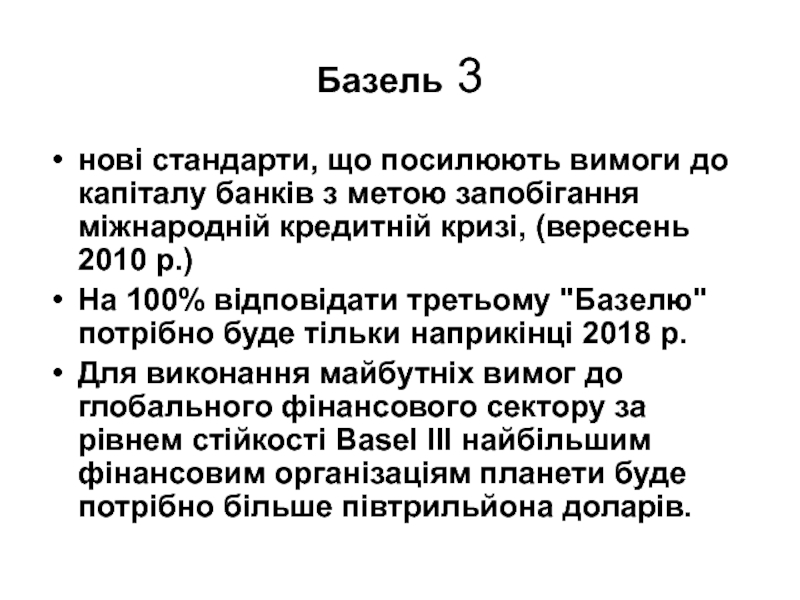 третьому "Базелю" потрібно буде тільки наприкінці 2018 р.