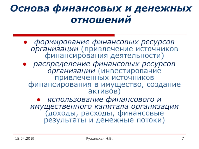внутренние финансовые и денежные отношения