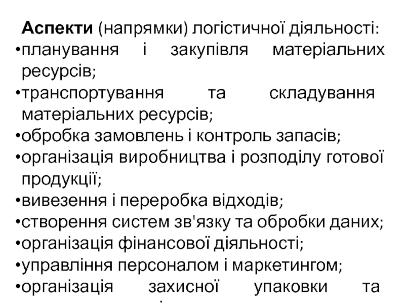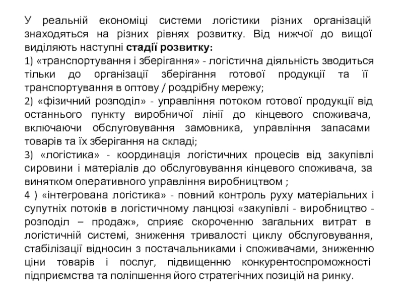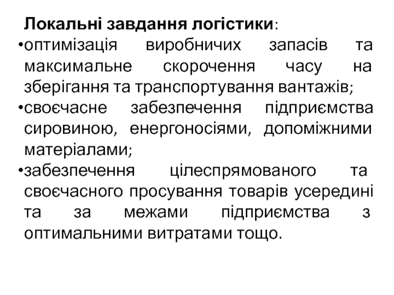 Слайд 12Логістика – отримання потрібних товарів або послуг у потрібному місці,