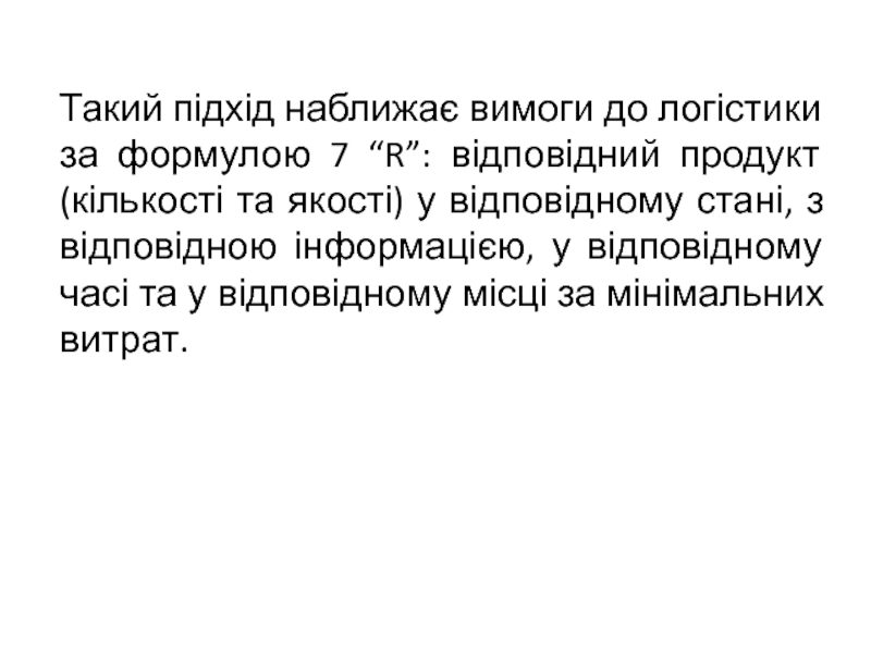 Слайд 17Такий підхід наближає вимоги до логістики за формулою 7 “R”: