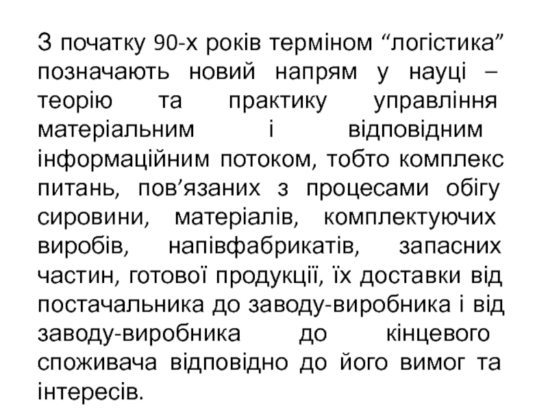 Слайд 11З початку 90-х років терміном “логістика” позначають новий напрям у