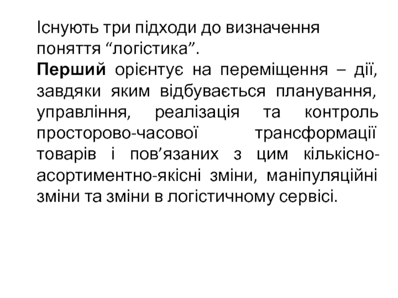 Слайд 13Існують три підходи до визначення поняття “логістика”.