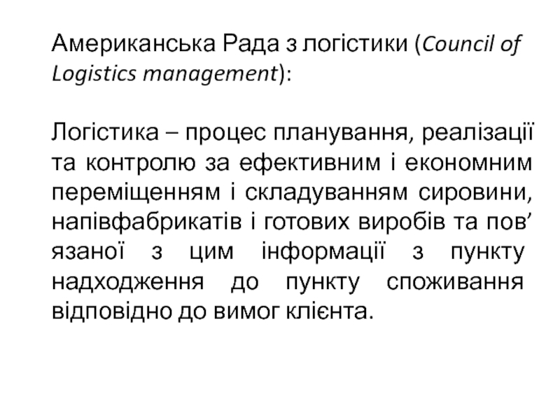 Слайд 14Американська Рада з логістики (Council of Logistics management):