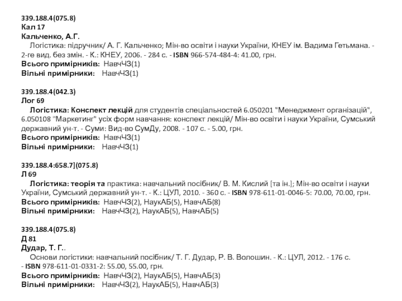 Слайд 7Логистика. - Журнал . - Б.ц.. -Виходить щоквартально