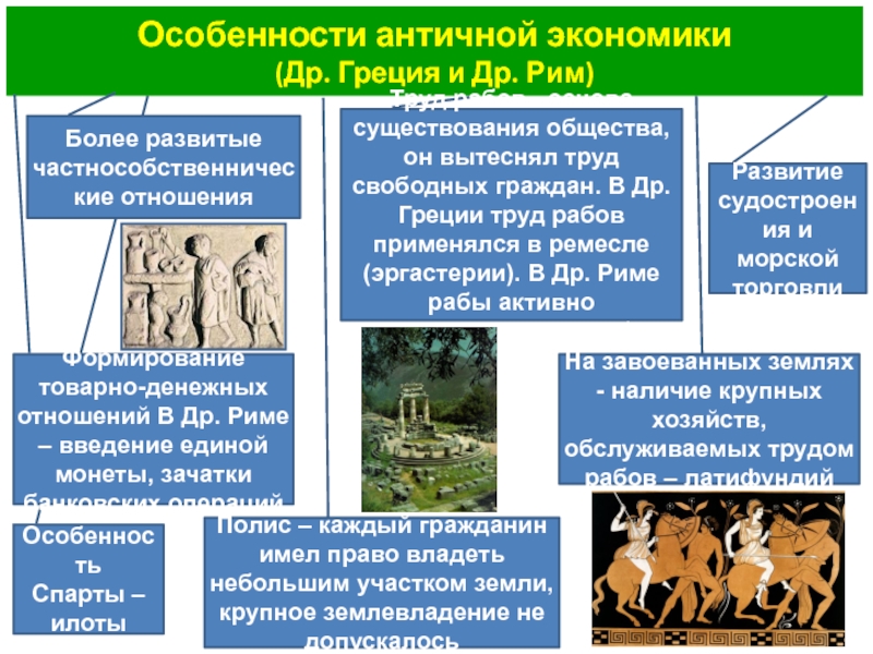 Крупные собственники делят земли на мелкие участки (пекулии), выделяя их своим рабам. Раб ведет хозяйство самостоятельно, платит оброк хозяину