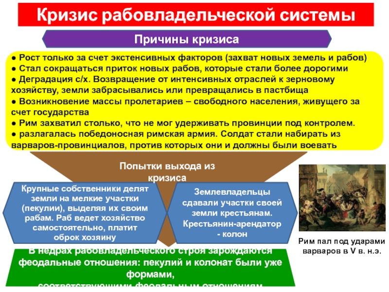 ● Возникновение массы пролетариев – свободного населения, живущего за счет государства