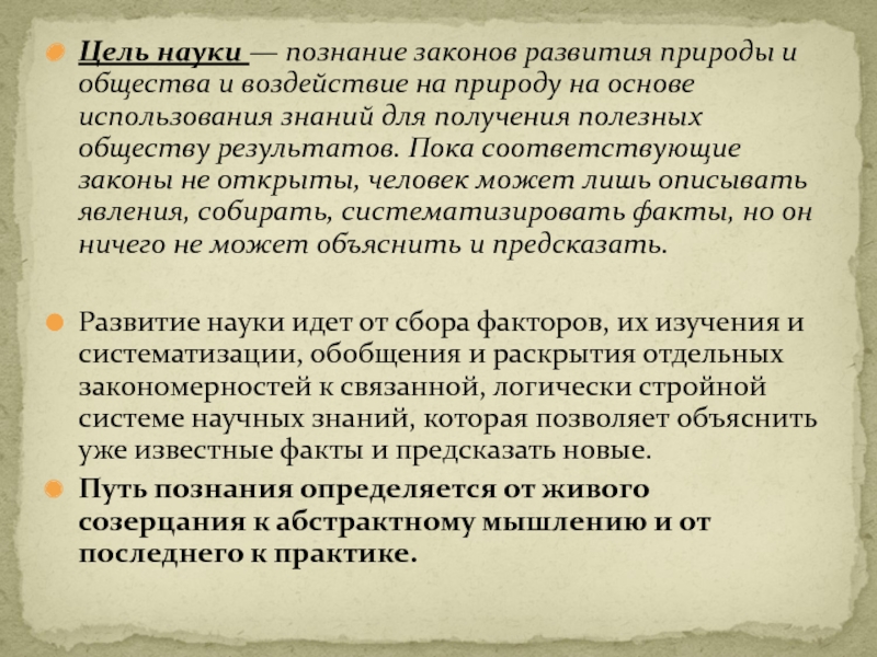 Слайд 8Цель науки — познание законов развития природы и общества и