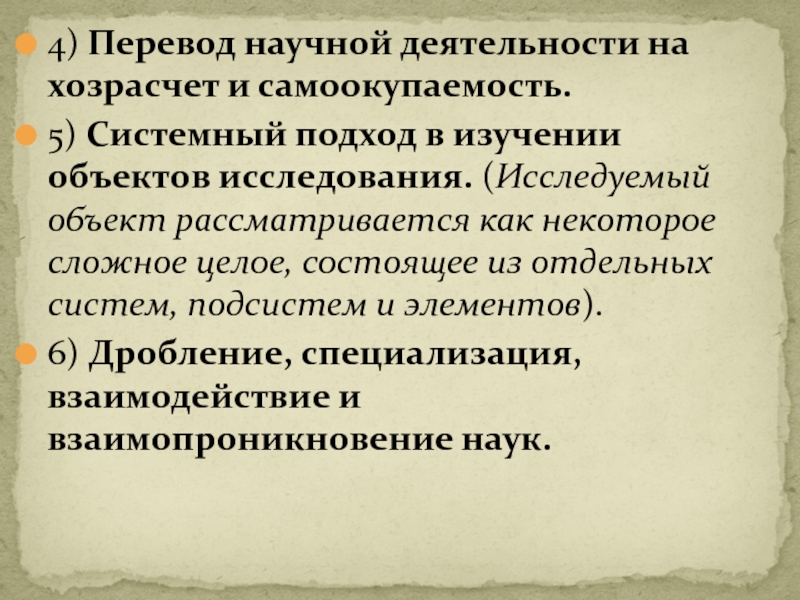Слайд 124) Перевод научной деятельности на хозрасчет и самоокупаемость.