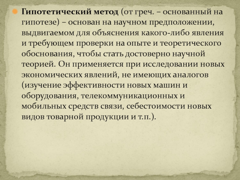 Слайд 29Гипотетический метод (от греч. – основанный на гипотезе) – основан на