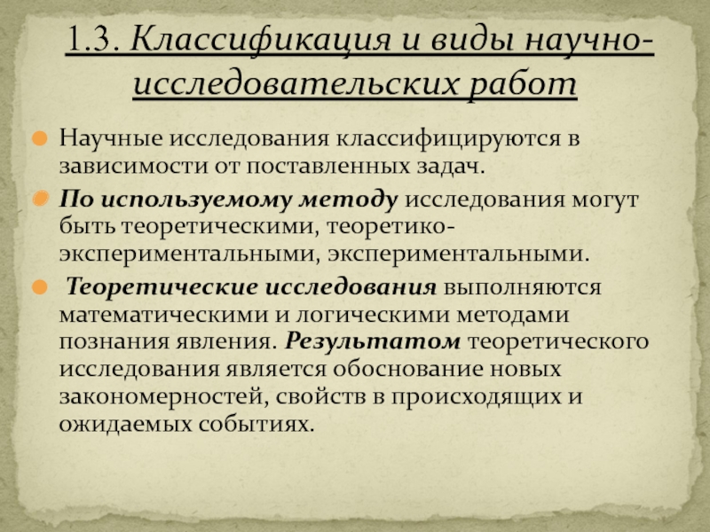 1.3. Классификация и виды научно-исследовательских работ